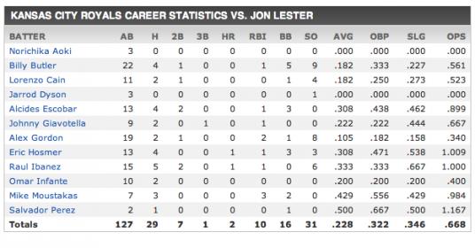If you want to play the BEANE game, then Royals is .5 better, which is HUGE vs career hitting.