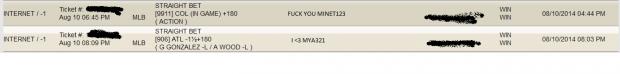 #18Posted IN GAME you flipping hamburgers. TonyTool you can suck....my di ck.Originally posted by BatemanPatricklMLB [9911] COL (IN GAME) +180 [Action]Comment -