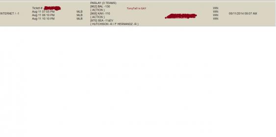 #42Yeah a joke posting live wagers that won. +150 or higher. Anyone remember the last time the inbred car thief or the illiterate pumpkin posted a play?Comment -