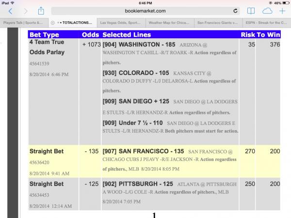 i added the Padres +125 as a late play. I'm done here. I'll let the girls get back to selling cookies I'm not wasting time on clowns anymoreComment -