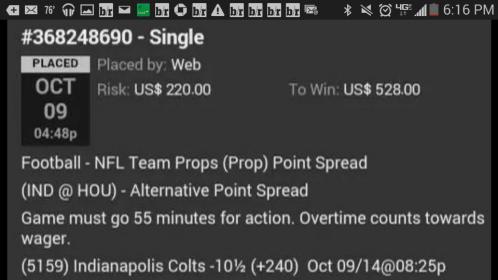 ^that -7 is with a half point bought, line was -105 -7.5 otherwise if you wanna take a stab at that. Just felt safer with the cushion of a push on a touchdown victory.