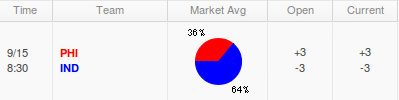 | @ Indianapolis Colts (0-1) | -- | 72.6% |