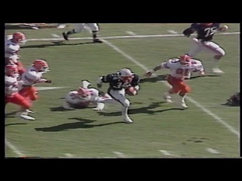 #86'1'' 230 lbs 4.2 40 yd dash... it wasnt even fair... watch that 91 yard TD run against Seattle. He makes those DBs look like 8th grade scrubs. I mean those DBs are running 4.4 and 4.5, and Bo is makes it look like they are standing still. He had over 3100 total yards, 18 TDs in 38 career games and touched the ball just 14 times a game. He had 55, 62, 73, 91 and 92 yard TD runs. He had an 88 yard run that didnt go for a TD, all this in 38 games. Raiders were 11-1 in game Bo scored a TD. His average TD was 27 yards long. He never went to training camp, just showed up after baseball season was over and ran for 5.4 a carry for his career. I mean he came in as a rookie, without even practicing and it took about a game and a half before he overtook a first ballot HOFer (Marcus Allen) as the teams #1 running option. You just don't see that, ever.Originally posted by jjgoldNobody had this guys body in the history of sports