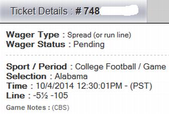 #4Bama -15.5 and it won't be available to parlay in the SBR bookComment -