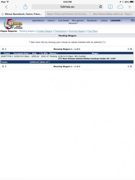 $300.00 $372.00 Pending Football - .DALLAS COWBOYS vs NEW ORLEANS SAINTS - Highest Scoring Quarter 2nd +124 Comment -