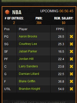 Placed in the money last night with my main lineup, then decided, I wanted to play Lebron as well so I made another one and got 15XXX out of 17XXX. I like to play the 2 dollar 30K tourney on draft kings.