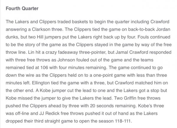 http://www.lakersnation.com/game-recap-lakers-battle-but-lose-close-game-to-the-clippers/2014/10/31/The battle of Los Angeles had its first act as the Lakers and Clippers met at Staples Center. The Lakers came into this game struggling at 0-2, while the Clippers won their season opener to come into the game at 1-0. — Have You Seen These LIMITED EDITION “Mamba Strikes Back” T-Shirts? — Kobe Bryant […]