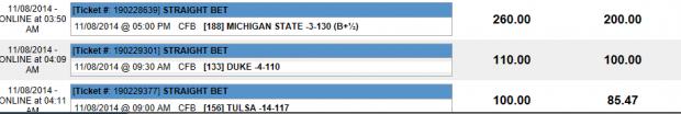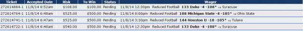 #2I'm liking this duke play. I think they are going to pound Syracuse. I'm staying away from that Mich. St/Ohio St. game today. that just gives me a bad vibe. (I do think Mich. St. will win though)Comment -