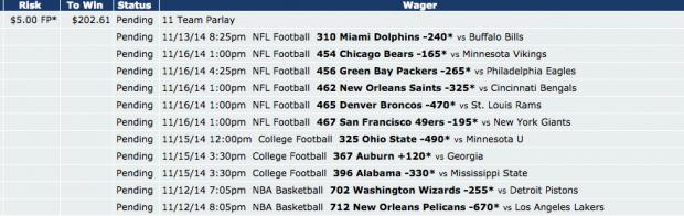 Pending 10 Team Parlay