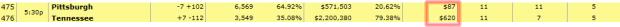 274875076-1 11/17/14 9:07pm $44.00 $40.00 Pending 11/17/14 8:30pm Live In-Play Football 9475 Pittsburgh Steelers/Tennessee Titans Under 58 -110* Comment -