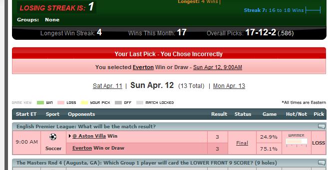 ugh, forgot to make another pick right after I won with the Hornets.