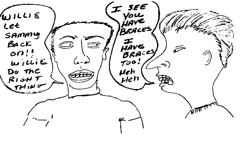 #22Roguey my man you always get my art. Roguey is right on. Bobby made a vid pleading as case to Willie (Willie is not butthead) Butthead comes in because of the braces connection. The line "Isee you have braces, I have braces too." Comes from the Beavis and Butthead Do America movie. Butthead meets Chelsey Clinton and hits on her with that line. Hope this clears up my toon. Any other questions pm Roguey,Originally posted by RogueJurorwillie is out of picture and bobby is pleading to him, but butthead just happens to be there being butthead, and the joke is their resemblance.