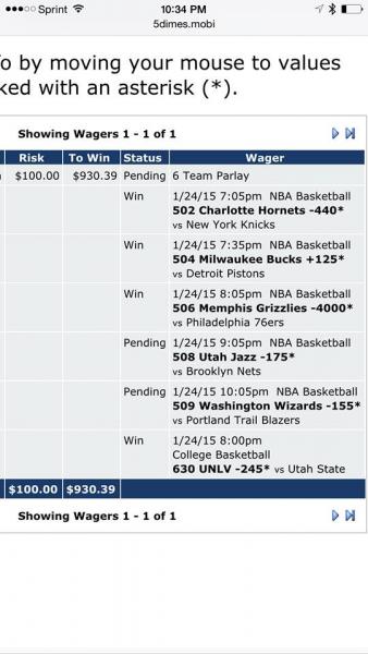 One game to go. Need wizards to win. 100 to win 900. Wish me luck