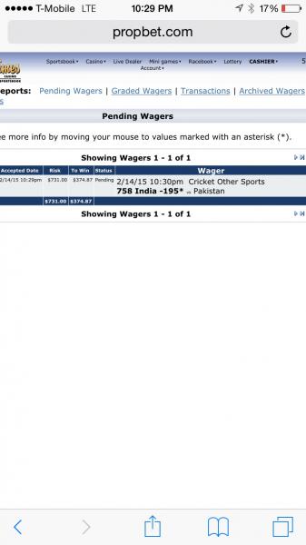 #51Pinny, 5dimes etc are not even chump change compared to the action illegal bookies in India, Pakistan, UAE take, specially India.Originally posted by MickeyManWhat books take big bets then? Pinny's max on the games tomorrow is only $1,760 right now.