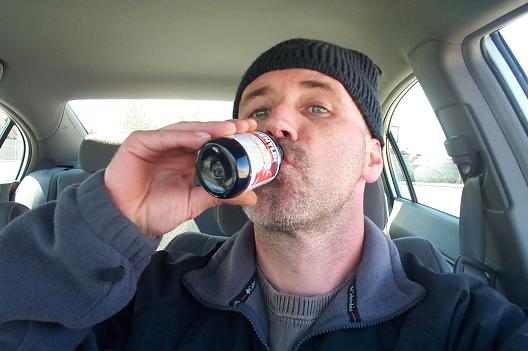 Pharmacy run this mornin'. Codeine washed down with Benylin.