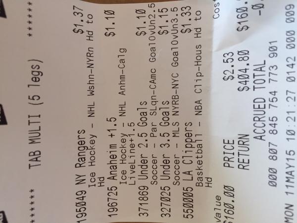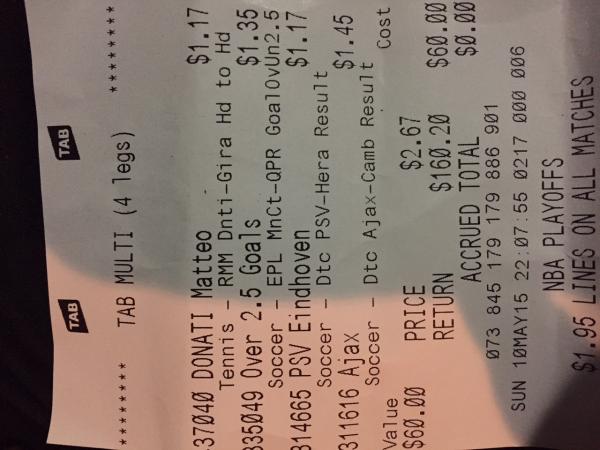 Here are my first two tickets, as you've noticed i started with $60 and have accrued the equivalent to the 3rd bet ticket.
