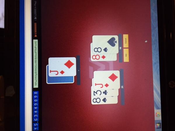 I hit the 8,3 and got 21. I wanted to split the 2nd 8,8 but they forced me to hit or stand.
