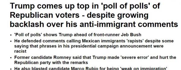 When announcing his plans on June 16 to seek the Republican nomination for president, Trump described immigrants from Mexico to the United States as drug-runners and rapists.