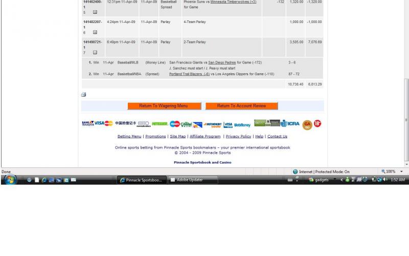 Yeah I know what you mean, it wasn't too difficult, it was Marlins ML, Angels ML, as well as the Cavs, Hawks, Pistons and Mavs all on the ML. 10 to 1 odds. (that was on the Friday)
