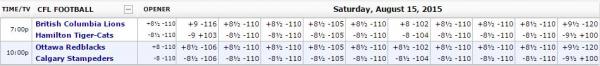 By not covering the closing line, Hamilton could effectively drive smart asses like me towards Calgary. Like I said, we could have one dirty day of football.