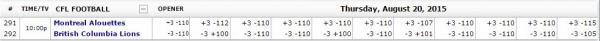 #518I have seen sufficient money movement to go ahead and pick up British Colombia Lions -135 and -3 (+108) over Montreal Allouettes.