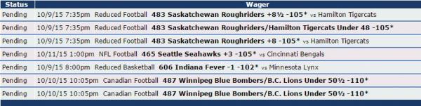 | 8-4 | 13-Sep | Ott/BC UNDER 50.5 (-106) | W | 94.34 | 94.34 | 49.5 | + | Y |