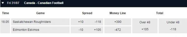 #251Originally posted by KVBThis week may already have a mistake. We did not move fast enough on Friday’s Saskatchewan versus Edmonton game. The line opened at Edmonton -11.5. I like the underdog at this level and think Saskatchewan +10.5 is good line. We are currently seeing a 10 point line around the world.