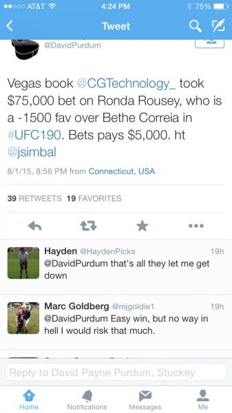 #93Some dude posted a ticket betting 75k to win 5k on Twitter last night lol.Comment -