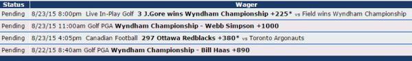 I just picked up Bill Haas +890 to win the Wyndham Championship.