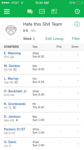 #28Don't be so quick to discount Melvin Gordon, think he's going to have a good year. Have him on two teams, had pretty good luck with rookie rb's in the past.Originally posted by pacoU guys want to see prolly the worse starting fantasy squad ever?