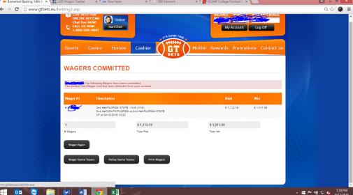 FSU 2nd half $1100 to win $1000.