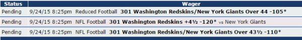 NY has played a few tough teams Atlanta and dallas is wash on that same level cousins is a upgrade from RGIII but the Giants at home with ELI on the verge of 0-3 is dangerous