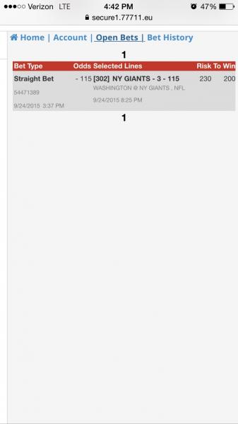 #37Man, 5dimes had the giants at -3 -115 for about 10 mins. If I can Giants -3 with a good vig I'm all over it. All this talk about the Redskins being the better team overall, really? https://en.wikipedia.org/wiki/Giants...dskins_rivalry