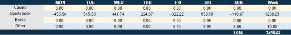 | Risked: $4,226.00 | Won: $1,576.00 | Lost: -$2,241.00 | Net: -$665.00 | Win Percentage 42.86% | 15-20-1 |