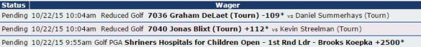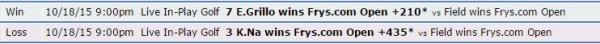 Due to focus on this golfer coming from different groups, I consider this a market situation in which an outright loss here will give us a direction of money flow that should lead to a profitable bet in the future. There will be a give and there will be a take. Striking now might show a lack of patience, but it says a lot that we can recognize that fact.