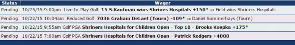 Patrick Rodgers tied for sixth last week at the Fry’s .com. Early this week I picked up Patrick Rodgers +4000 to win the Shriners Hospitals Open.