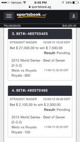 $300 on the Royals ML Game 5. World Series Ends Tonight.
