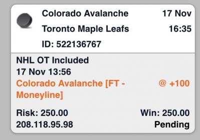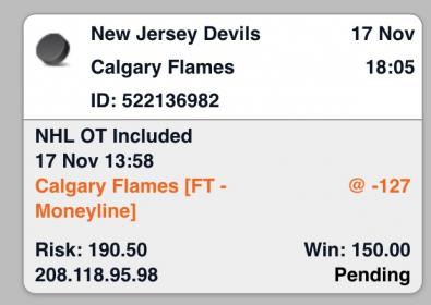 #31On the Winnipeg Jets tonight, reasonably sized wager.