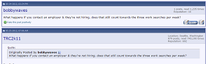 waves has a point here..... because EVERYONE -- even retired millionaires like waves -- just happens to be curious enough to ask a question an on-line unemployment forum of whether an unemployed person -- OBVIOUSLY NOT THE RETIRED Small b waves -- who contacts his former employer can count that as one of his required "searches" for employment..... THE RETIRED Small b was just curious to know this information; he really wasn't a lazy unemployed fuk previously fired from his job trying to get out of performing a measly three searches for a new job to keep his f'n lameass unemployment checks coming.....