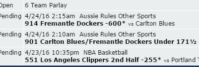 Cooch, I have access to an online account that we want to throw some random plays before hitting the book hard and get tossed. Aussie rules will be perfect but Heritage isn't offering the Total.