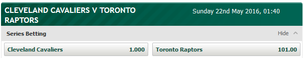 This is crazy if you're asking me ... no other bookmaker on Earth is currently offering that price... but that means that perhaps the Cavs will run a 4-0 sweep against the Raps, PaddyPower has great analysts and usually predicts outcomes very well.