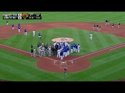 look at him get tossed for hitting Lawrie. Lawrie just walks to first and Ventura has the idiocy to go over to him and jaw TRYING to start a fight... which got him tossed as the ump heard him say he threw at him on purpose as Lawrie ignores him