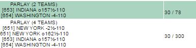 Here's my small tickets for tonight. First 2 legs of the 4 teamer are complete. Liking washington -4 and over 157.5. What are your thought bigbiz?