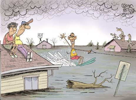 That aside....the actual floods resided fast....so he could be there if wanted. His image people have told him the damn ole media has let it out he didn't show so he's got a trip planned Tuesday to save the day. Someone set a line on him being human about it and focusing on the victims or...he'll have a cute speech drafted talking about climate change for the flood and for the Cali fires?Comment -