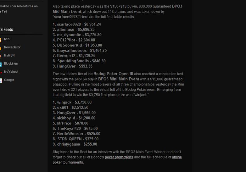 You must not have been hung-over when you played those 2 tournaments. Way to kick some Bodog Butt!!!!