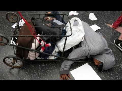 A homeless American protects @realDonaldTrump Hollywood star. 20 million illegals & Americans sleep on the streets in Tents #VoteTrump