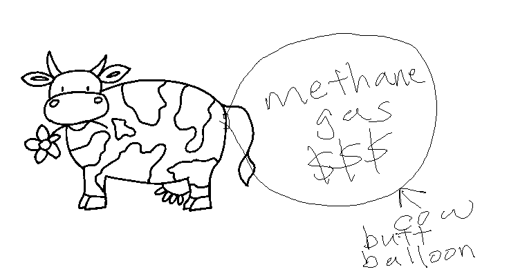 you heard from here first. one day when corporations start putting gas tubes up cow's ass, you know they stole my idea.