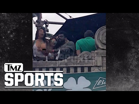 The woman is playing to paradegoers and motions at her breasts -- then points to Zeke. Next thing you know, he reaches over and pulls her top down, exposing her bare breast. She scrambles to cover up.
