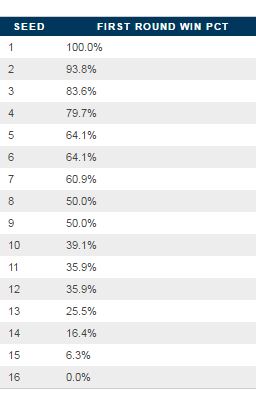 Going back to 1985, the seeds have been pretty accurate compared to win percentage... We talk about and remember the 12-5 upsets, but that doesn't mean they happen more commonly...