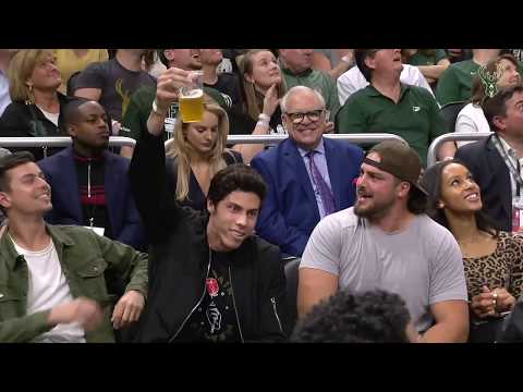 #59Chugging a beer is a right of passage for any man, especially when challenged by another man in front of thousands of people at a sporting event. There is a new tradition in Milwaukee with the recent rise to success of the Milwaukee Bucks as local celebrities and athletes attending the game challenge each other to a beer chugging contest during timeouts at the game.